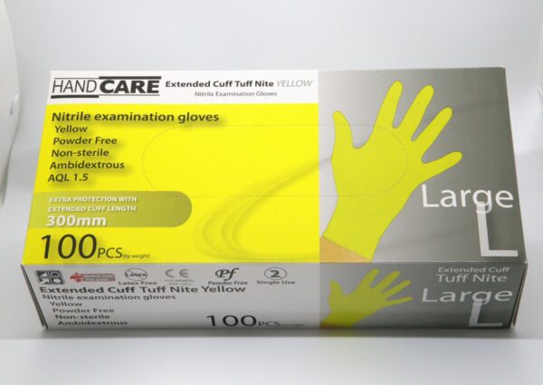 EXTENDED CUFF HANDCARE NITRILE YELLOW PF LARGE GLOVES