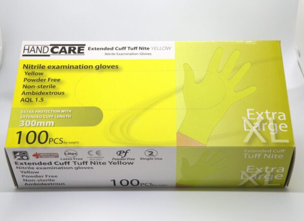 EXTENDED CUFF HANCARE NITRILE YELLOW PF EXTRA LARGE GLOVES